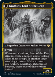 Flying Whenever Krothuss, Lord of the Deep attacks, create a tapped and attacking token that's a copy of another target attacking creature. If that creature is a Kraken, Leviathan, Octopus, or Serpent, create two of those tokens instead.